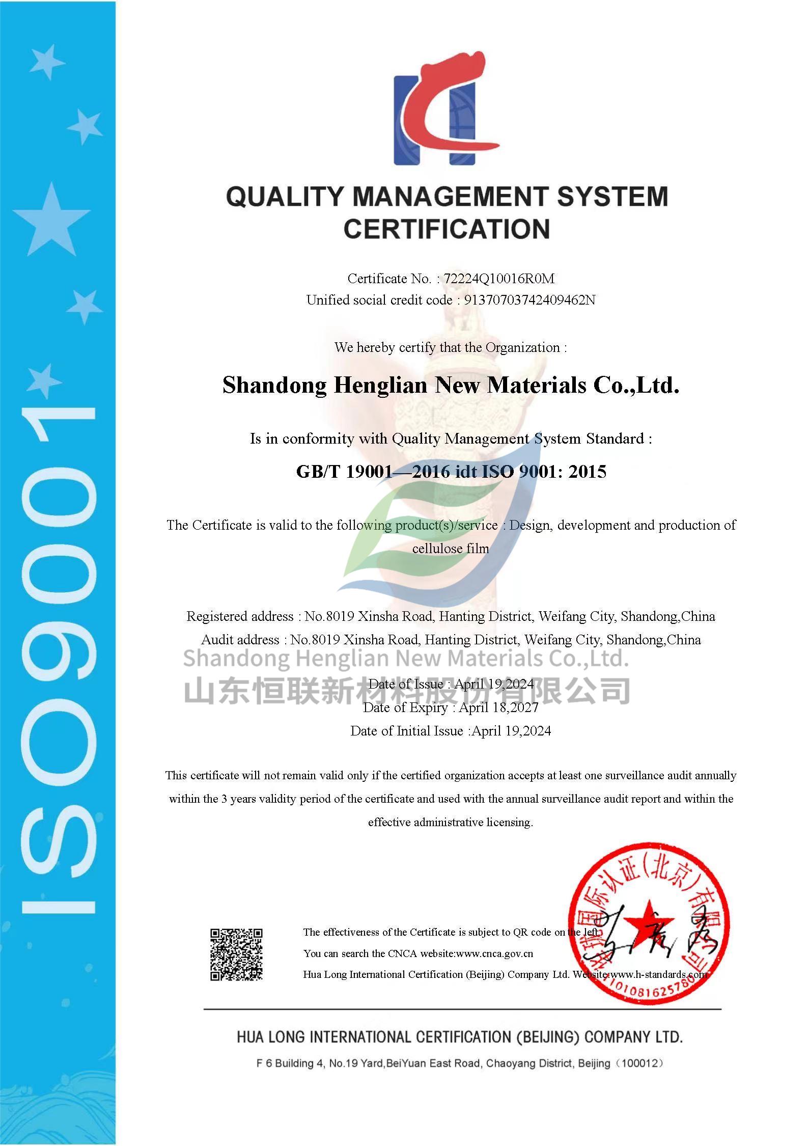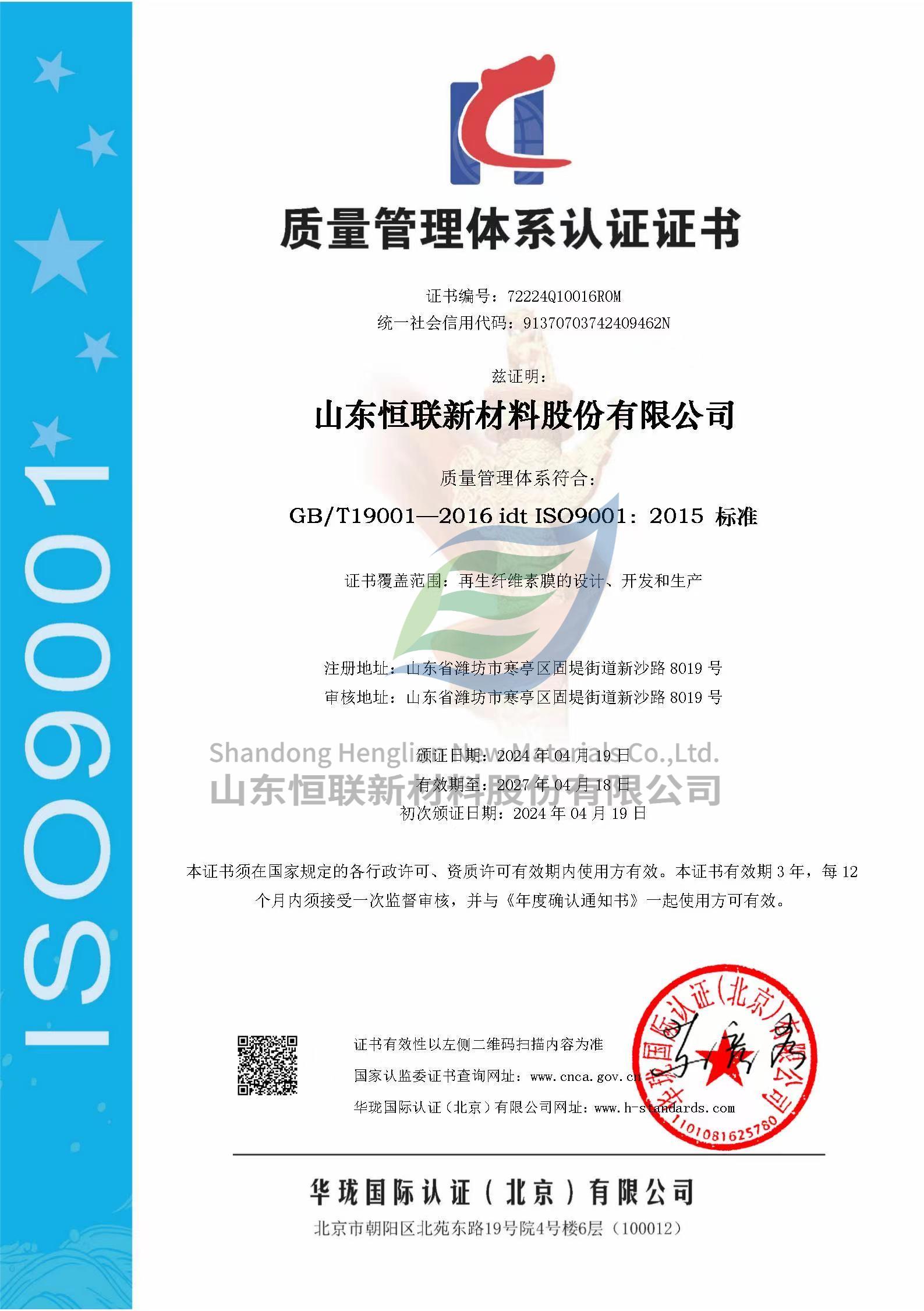 ISO9001質(zhì)量管理體系認(rèn)證證書