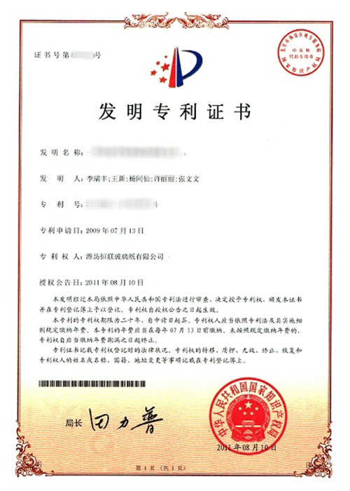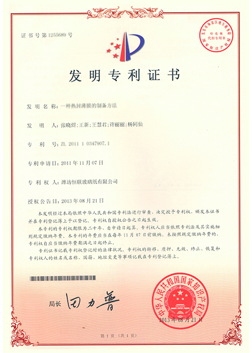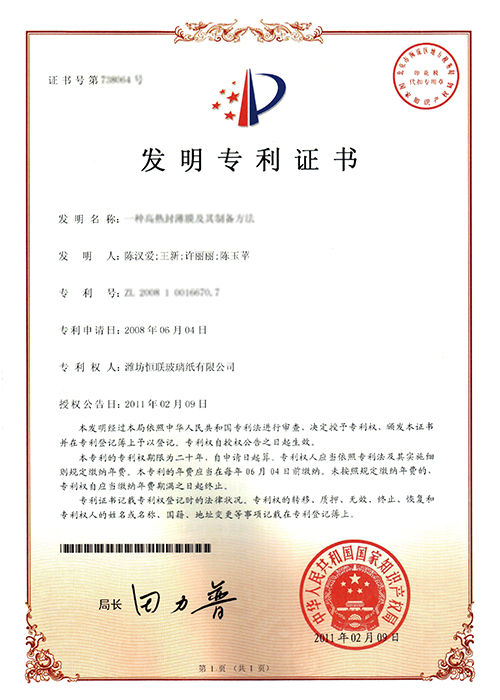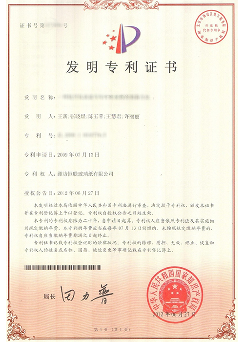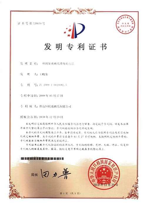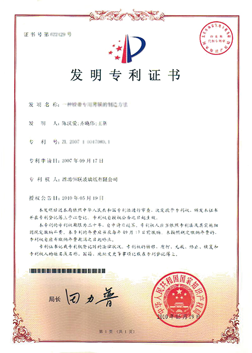 新型溶劑型涂布玻璃紙——被列入“2008年山東省重點技術(shù)創(chuàng)新項目計劃”(魯經(jīng)貿(mào)技字[2008]157號),已通過山東省級科技成果鑒定。