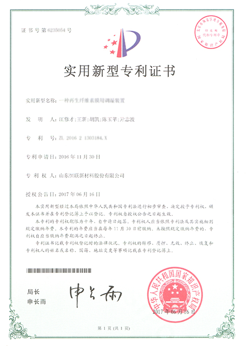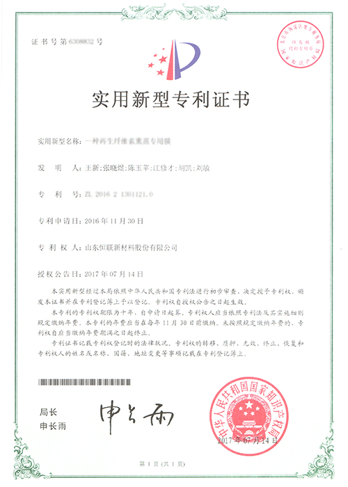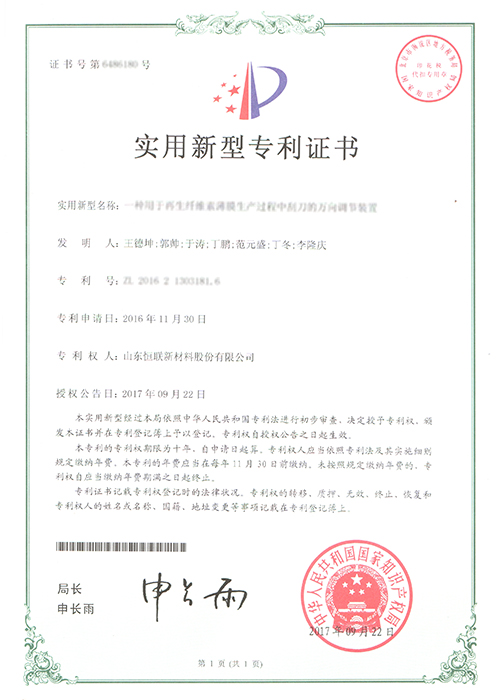 直線打孔再生纖維素膜——被列入“2012年山東省第一批技術(shù)創(chuàng)新項目計劃”(魯經(jīng)信技字[2012]109號),已通過山東省級科技成果鑒定。
