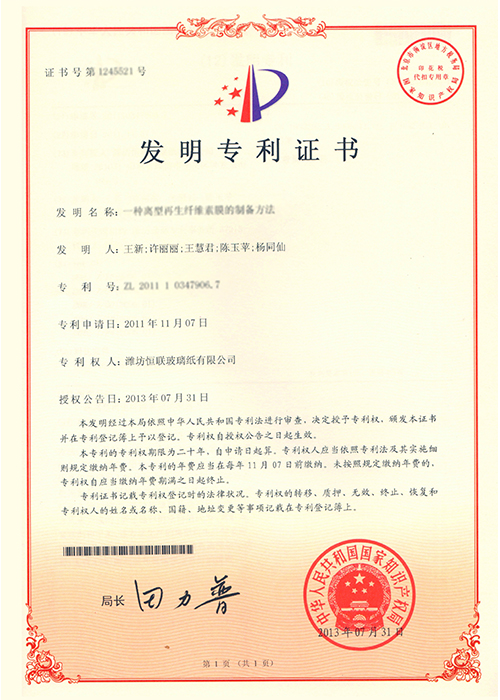 離型再生纖維素膜——被列入“2010年山東省第二批技術(shù)創(chuàng)新項目計劃”(魯經(jīng)信技字[2010]211號),已通過山東省級科技成果鑒定。